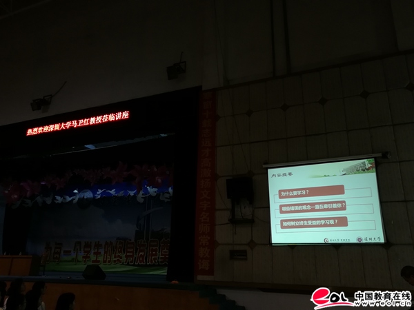 中国教育在线讯 6月13日,借力于中国教育在线,东莞实验中学特邀深圳大学马卫红教授为学校高二学子开展了一场以“高中学业规划”为主题的大型公益讲座。