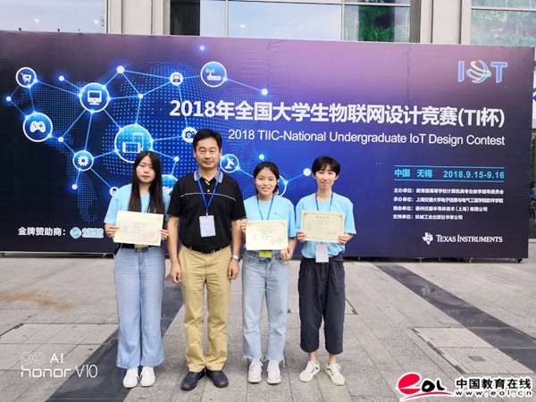 中国教育在线讯9月15-16日,由教育部高等学校计算机类专业教学指导委员会主办的2018年全国大学生物联网设计竞赛(TI杯)全国总决赛在无锡落幕。由广东白云学院大数据与计算机学院院长万世明、计算机系副主任梁永恩指导,由2016级物联网工程班陈宇晗、吴丽如、杨柳仪等三位同学研发的作品《白云智慧酒店》获大赛二等奖。