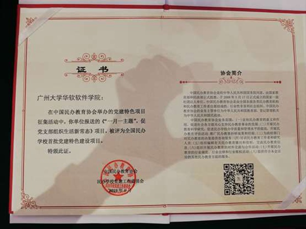 广州大学华软软件学院党建项目评为全国民办学校首批党建特色项目