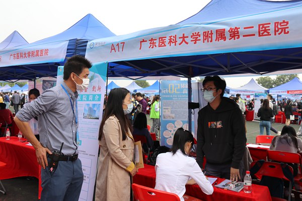 中国教育在线讯 12月13日,由广东省教育厅主办,广东医科大学承办,东莞市人力资源服务中心和东莞市人力资源社会保障局松山湖分局指导的广东省2021届普通高校毕业生医学、药学、卫生管理类专场供需见面会在广东医科大学东莞校区举行。