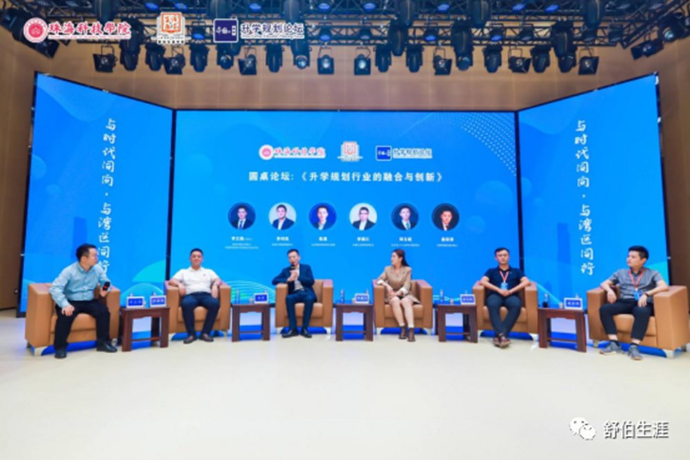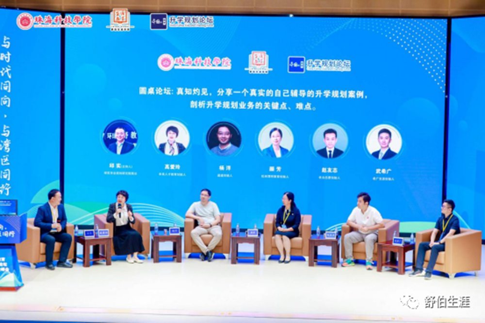 第一场圆桌讨论环节,香港翰桥国际教育市场总监王为愿(主持人)、优志愿创始人及CEO耿忠诚、湖南启善尚行教育创始人孟陶然、法国大学理工学院院长联盟北京办公室主任王晓杭、四川佳发精志愿教育科技有限公司总经理沈大凯、心韵养成教育创始人范妮就《高考升学或生涯机构的可持续发展之路》做了深入讨论。