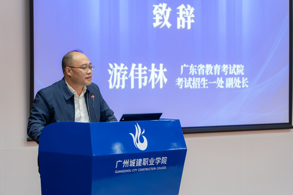 广州城建职业学院杨清国副校长首先代表学校向到会的领导、专家和老师表示诚挚的欢迎和衷心的感谢。他介绍了广州城建职业学院的办学历史,以及学校近几年招生工作取得的显著成效。杨清国副校长表示随着社会经济的发展和产业结构的调整,高等职业教育的重要性越来越突出,高职院校招生工作也面临着新的机遇和挑战。希望通过协办这场研讨会,深入探讨高职院校招生工作的新形势、新挑战,共同推动高职院校招生工作的创新发展。