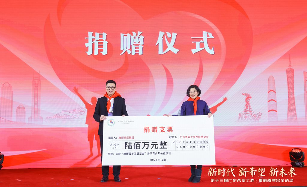 据悉,本届南粤会亲活动由瑰丽酒店集团提供活动费用支持。活动现场,瑰丽酒店集团还向广东青基会捐赠六百万元,正式设立“广东省青少年发展基金会瑰丽青年发展基金”,支持广东希望工程各项公益事业。