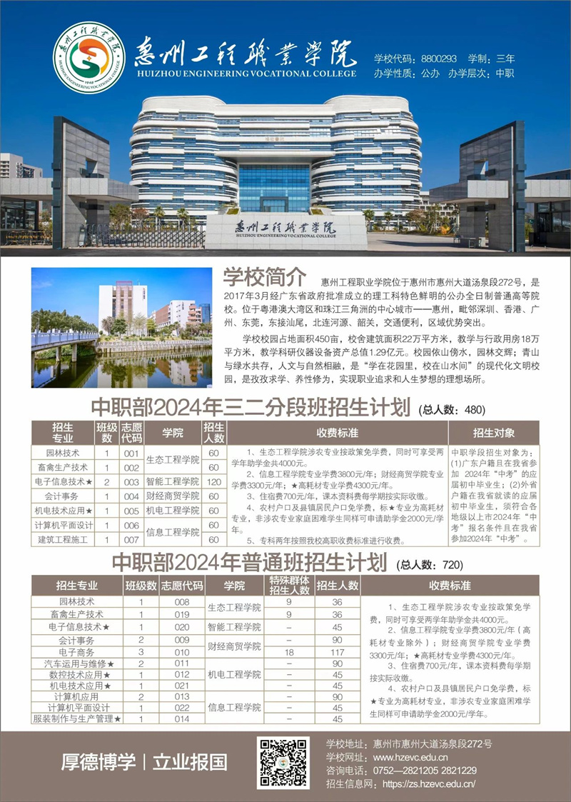 惠州工程职业学院2024年中职部招生简章