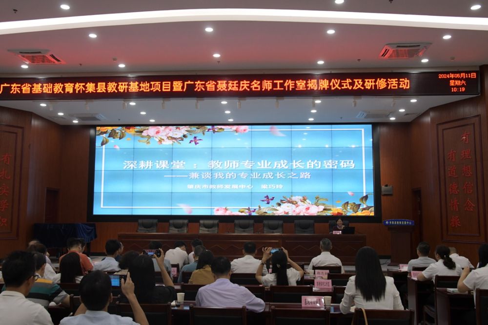 教以潜心,研以致远。在挂牌仪式后,肇庆市教师发展中心义务教育部部长梁巧玲作《深耕课堂:教师专业成长的密码》的专题讲座。梁巧玲老师结合自己的实践经验,为大家分享了宝贵的知识和经验。她的讲座深入浅出,内容丰富,让在场的每个人都受益匪浅。梁巧玲老师的“成就别人,也在成就自己”为大家指明了前进的方向,也为未来的学习和工作奠定了坚实的基础。