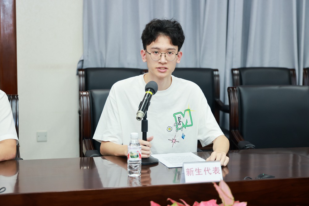 李宇涵、蔡德森、吴城锋等6名新生代表分享了自己选择深职大的理由和对大学生活的展望。来自广州市第六中学的李宇涵今年以600分的成绩录取至深职大电子信息工程技术(实验班),深职大是他的高考第一志愿。“深圳职业技术大学以培养符合国家和深圳产业发展需求的人才为己任,这一定位深深地吸引了我。”李宇涵在高考后参观了深职大的未来技术学院,学院里前沿的教学课程、杰出的教师团队和先进的设施设备,让他印象深刻。“深职大与众多知名企业建立合作,学校专业设置与市场发展对接。在这里,我将有机会直接接触到行业最前沿的知识,培养起扎实的职业素养。”