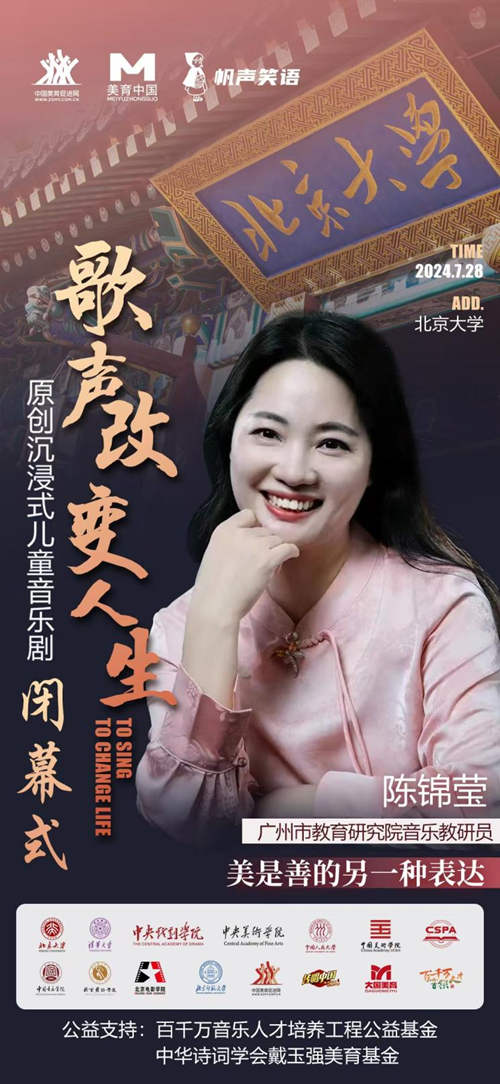 为深入贯彻国务院办公厅、中央办公厅《关于全面加强和改进新时代学校美育工作的意见》及《教育部关于全面实施学校美育浸润活动的通知》文件精神,贯彻落实党的二十大有关“传承中华优秀传统文化”的精神,2024年7月27日原创沉浸式儿童音乐剧《歌声改变人生》礼乐弦歌专场在北京大学百周年纪念讲堂成功上演。