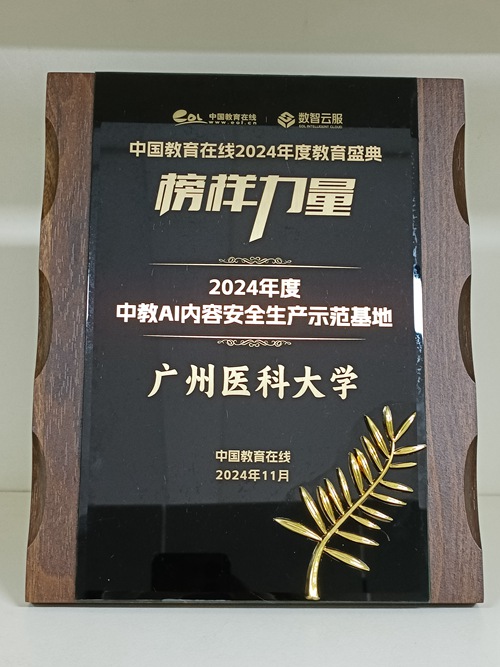近日,中国教育在线“榜样力量·2024年度教育盛典”优秀案例公布。广州医科大学凭借在新媒体领域的卓越成就与深远影响力,荣获 “2024年度中教AI内容安全生产示范基地”。