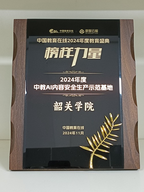 近日,中国教育在线“榜样力量·2024年度教育盛典”优秀案例公布。韶关学院凭借在新媒体领域的卓越成就与深远影响力,荣获 “2024年度中教AI内容安全生产示范基地”。