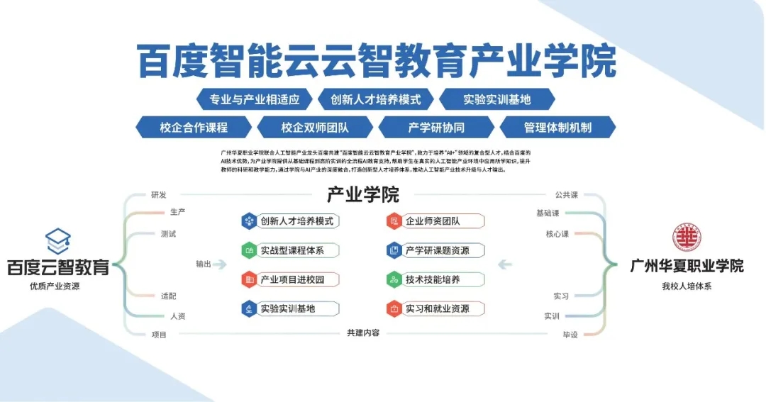 产业学院致力于培养“AI+”领域的复合型人才,结合百度的AI技术优势,为产业学院提供从基础课程到高阶实训的全流程AI教育支持,帮助学生在真实的人工智能产业环境中应用所学知识,提升教师的科研和教学能力,通过学院与AI产业的深度融合,打造创新型人才培养体系推动人工智能产业技术升级与人才输出。