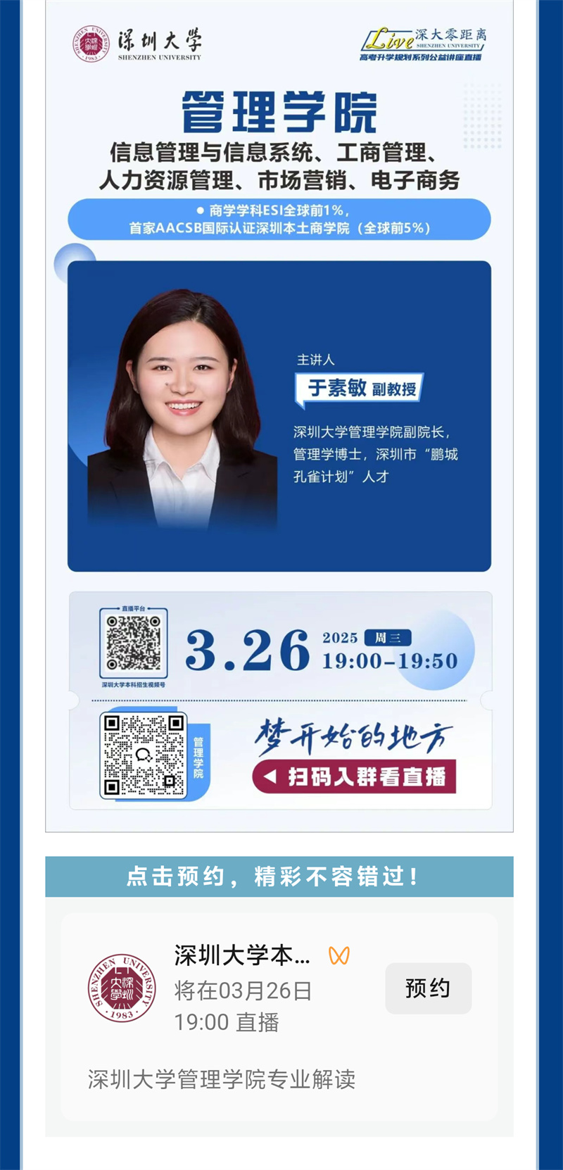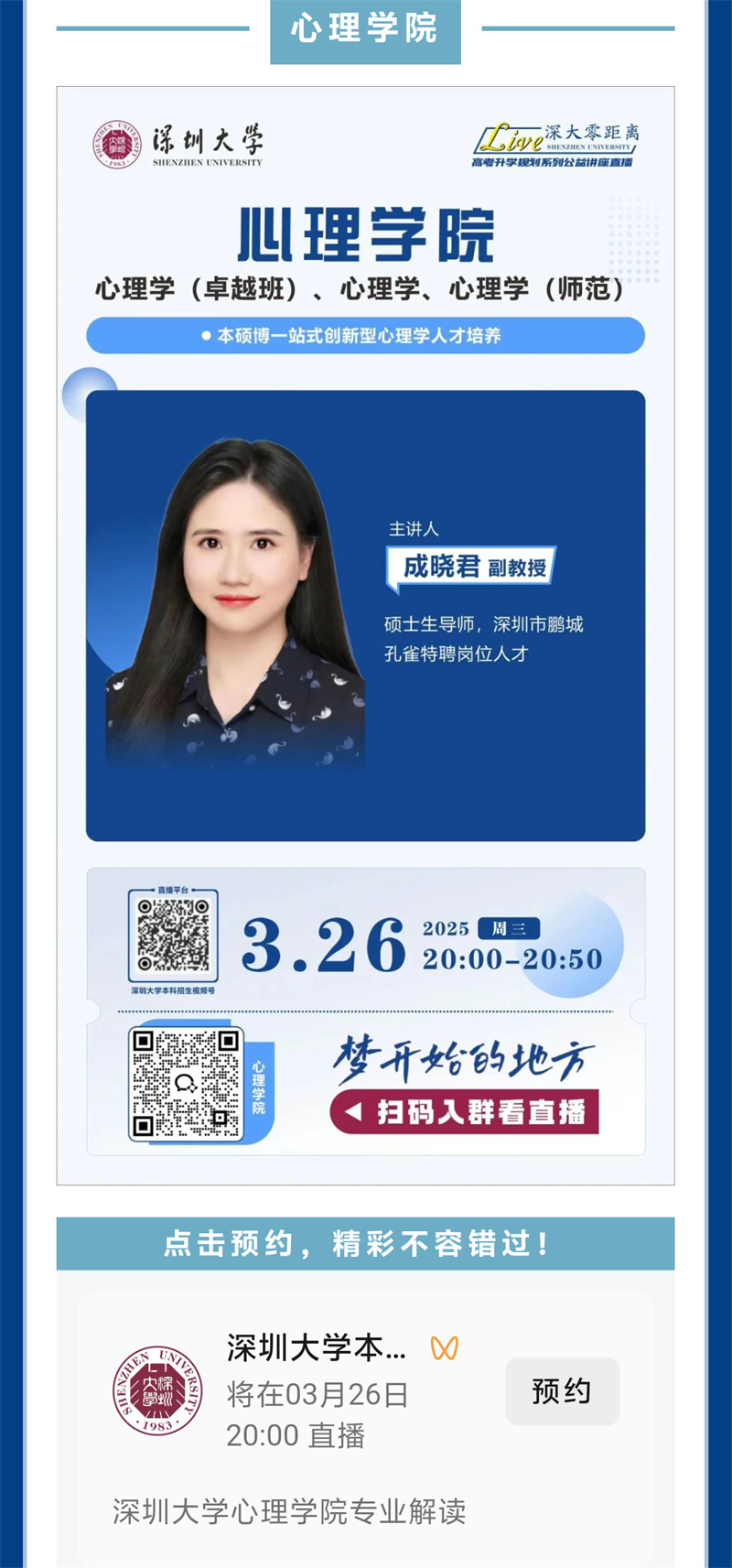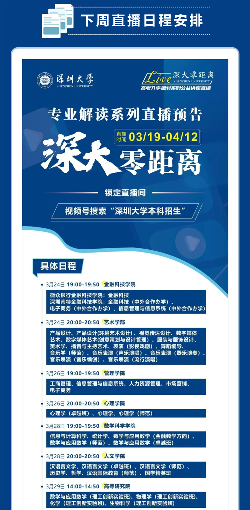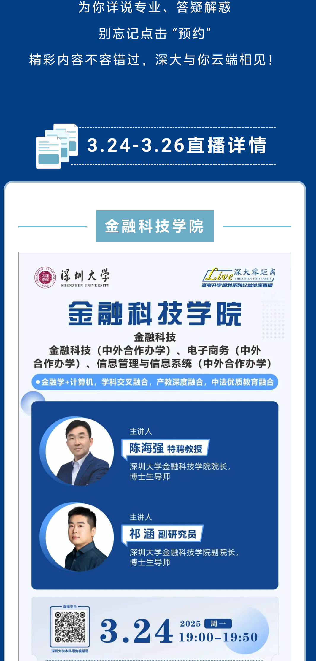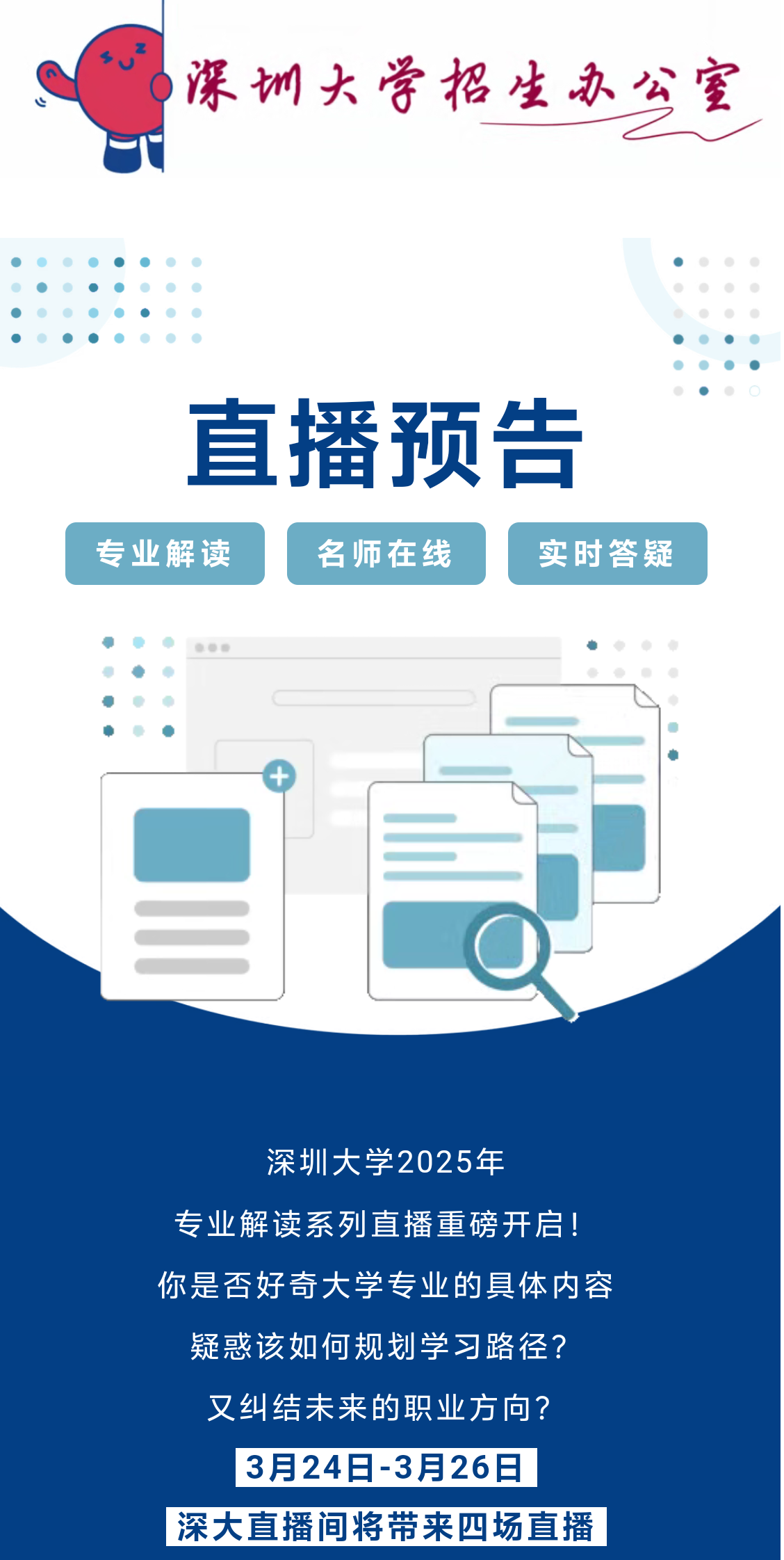 深圳大学:3.24-3.26直播预告 | 专业解读,名师在线,实时答疑,不要错过!