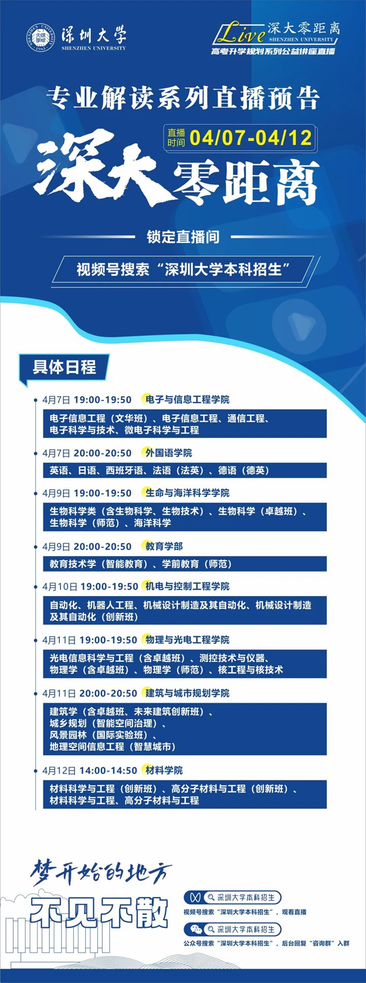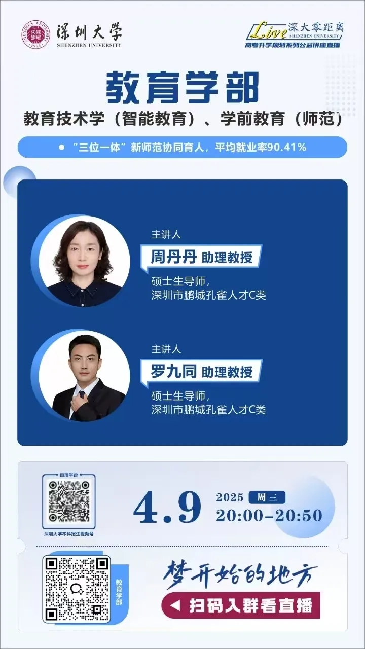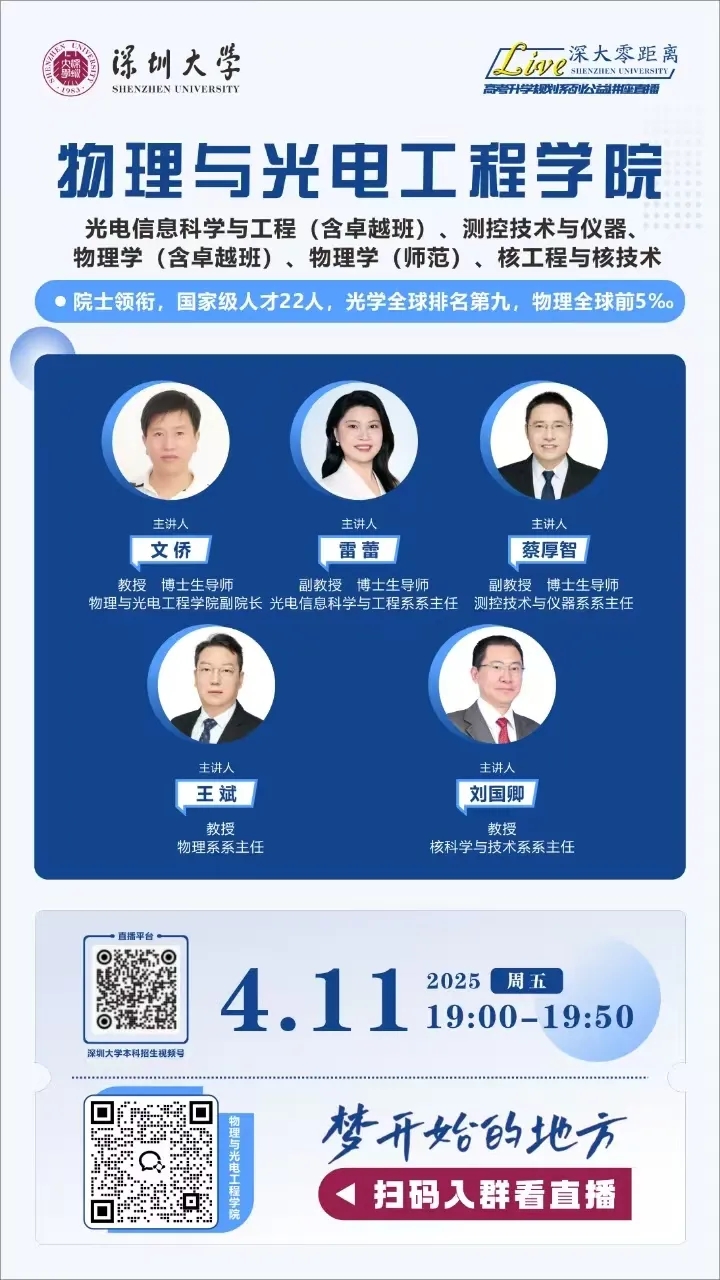 深圳大学4月9日-12日直播预告 | 专业解读,名师在线,实时答疑,不要错过!