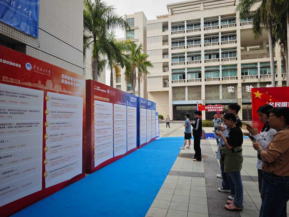 为深入推进国家安全宣传教育工作,切实增强师生国家安全意识,筑牢国家安全防线,在第十个全民国家安全教育日来临之际,华南理工大学于2025年4月8日下午在五山校区举办了以"全民国家安全教育,走深走实十周年"为主题的国家安全主题校园微展览活动。