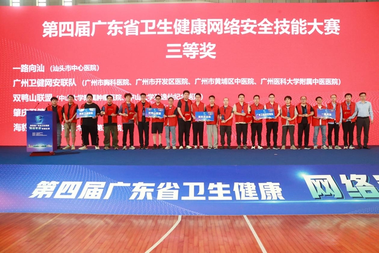 本次比赛的裁判长郭文明和参赛代表江卓斌进行了赛前表态发言,表示将认真履行裁判职责,认真对待本次比赛,切实提高网络安全技能。经过6小时的紧张激烈角逐,佛山卫健飞鸿队荣获一等奖;中大附一、东莞医信一队、江门市新会中医院三支队伍荣获二等奖;佛山卫健有为队、南粤杏林队、汕大附二、南医大联队、中山市医联体队、一路向汕、广州卫健网安联队、双鸭山联盟、肇庆卫健联队、海豹突击队十支队伍荣获三等奖。