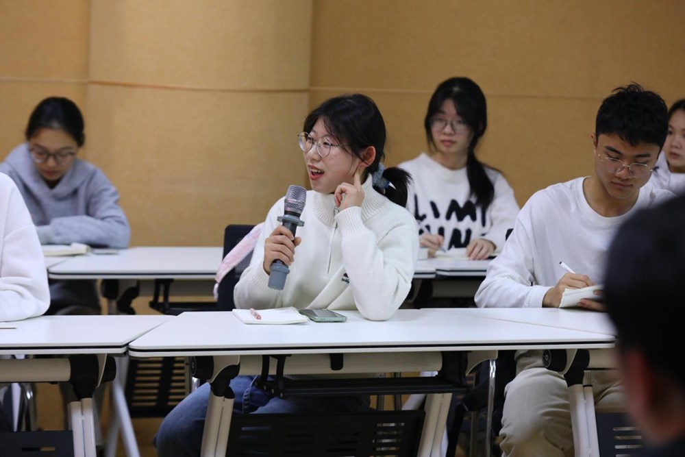 “这些变化大家感知如何?对学校在数字化转型智能化改造方面有什么建议?对AI时代未来的就业发展有何思考?我也想听听大家的想法。”管雪话音刚落,同学们就纷纷举手发言。