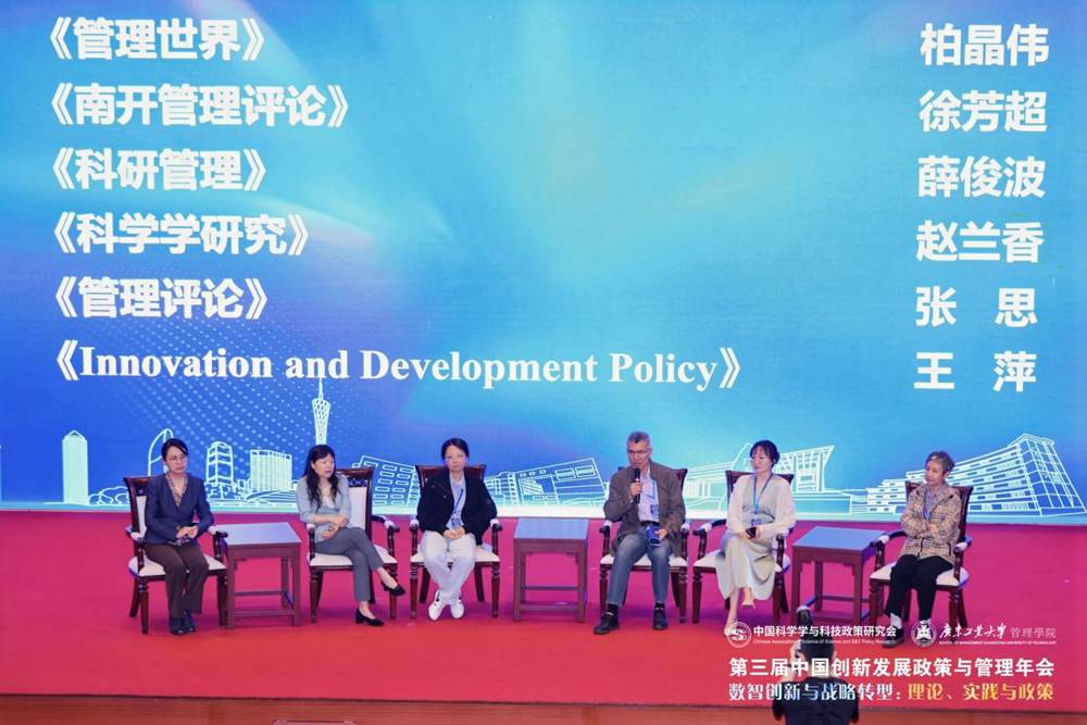 会议设置了13场主旨报告、15个平行分论坛和6家期刊见面会。中国科学学与科技政策研究会理事长穆荣平教授、中国科学技术发展战略研究院胡志坚教授、广东工业大学刘强教授、上海交通大学李垣教授、中国科学院大学柳卸林教授、华南理工大学朱桂龙教授、中国科学院大学陈凯华教授、中国科学院科技战略咨询研究院余江研究员、清华大学周源副教授、哈尔滨工程大学苏屹教授、北京师范大学焦豪教授、同济大学解学梅教授、中国科学院科技战略咨询研究院郭京京研究员应邀作主旨报告。在平行论坛环节,240余位作者汇报了学术论文,60余位优秀学者担任主持和点评人,讨论涵盖数智创新与转型、创新发展的中国模式、创新网络与创新生态系统、科技创新政策与平台支撑、政策组合与创新发展、创新链人才链与产业链融合发展、数智赋能战略转型、数智赋能产业高质量发展、数绿协同创新发展、数智人才发展与创新、数据要素市场化与伦理治理、数智化与治理体系现代化等前沿议题。在期刊见面会上,《管理世界》《南开管理评论》《科研管理》《科学学研究》《管理评论》《Innovation and Development Policy》等期刊的代表与参会学者展开深入交流,详细解读期刊的办刊理念、选题方向及投稿规范,为学者们提供了宝贵的学术发表指导。