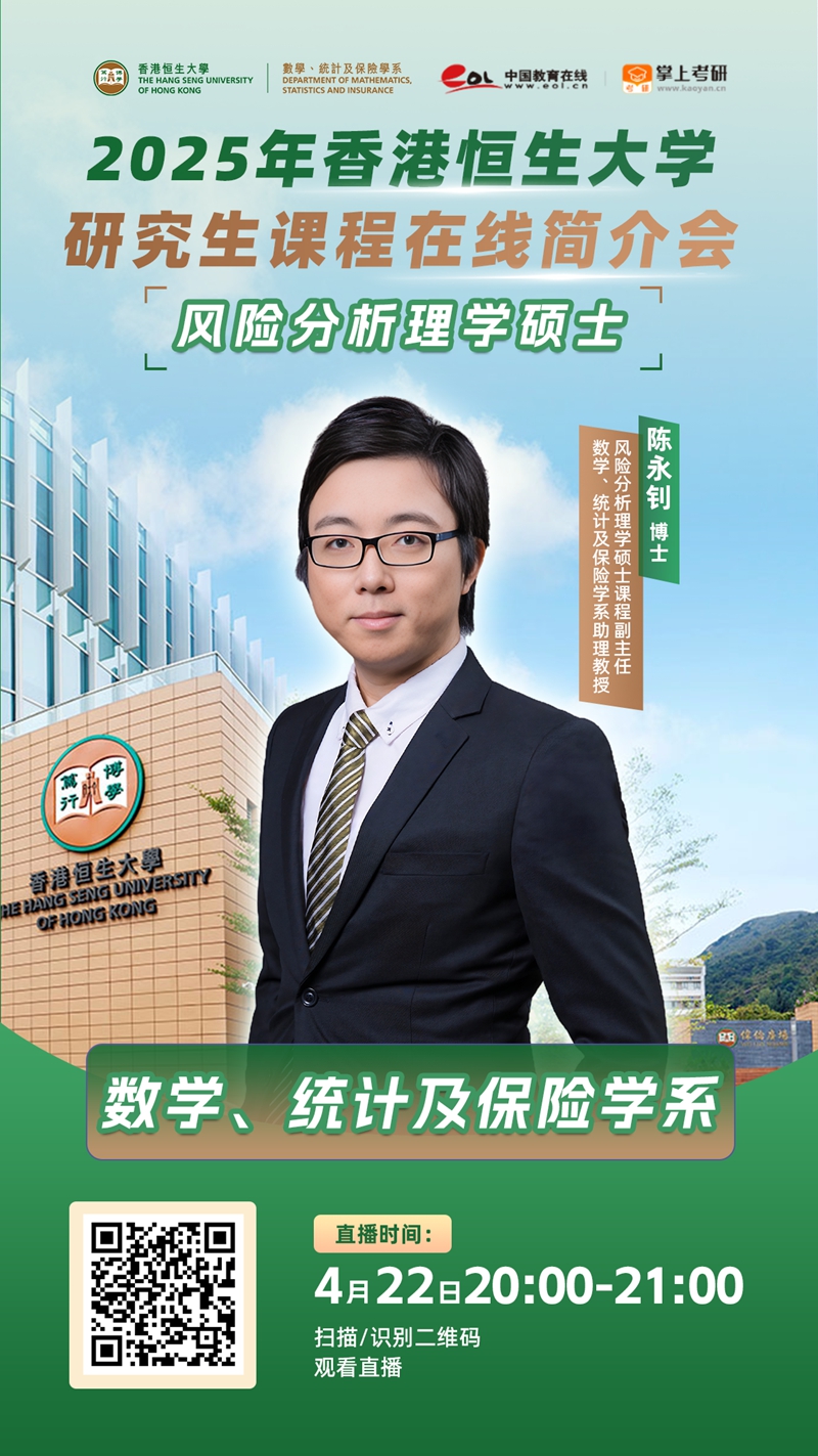 在恒大45周年校庆之际,经香港学术及职业资历评审局认证,并由香港特别行政区行政长官会同行政会议批准,数学、统计及保险学系于2025/26学年起开设风险分析理学硕士课程。