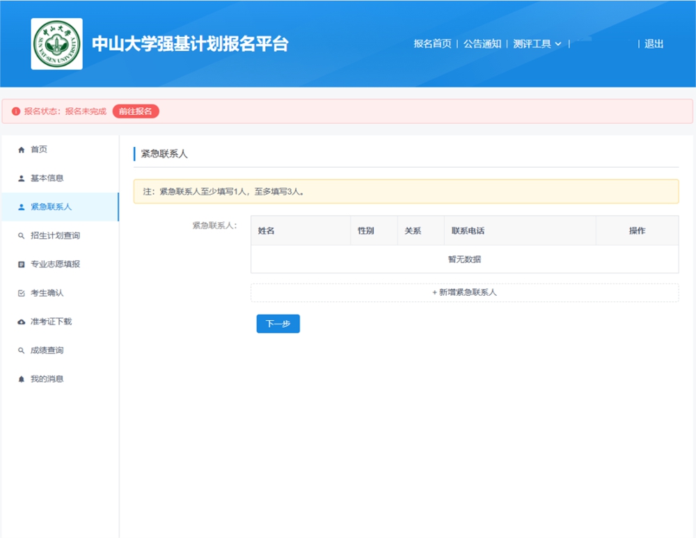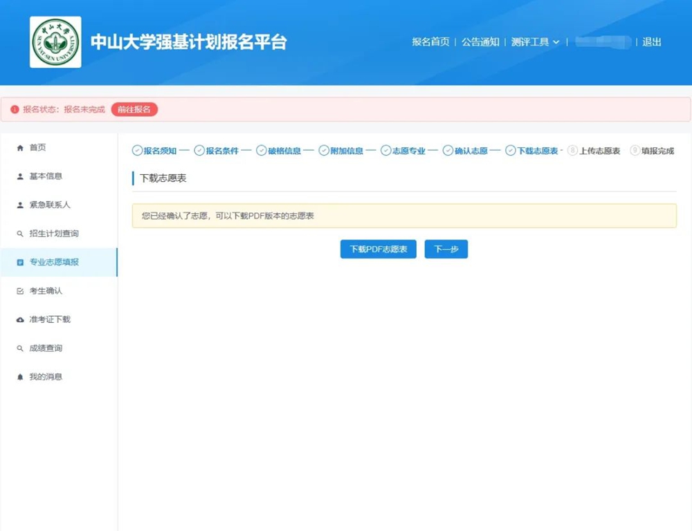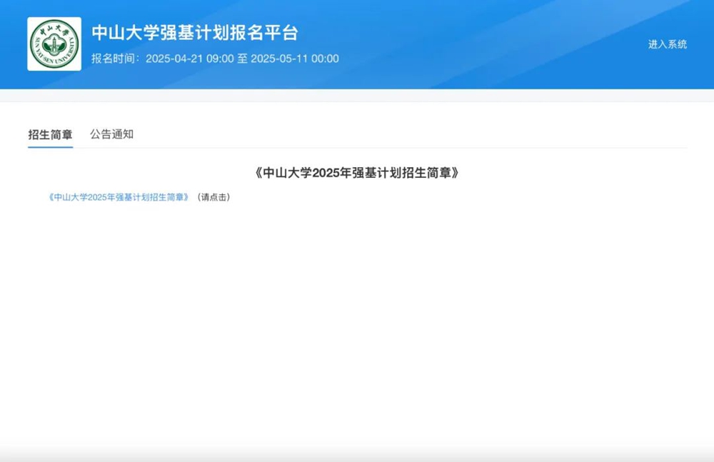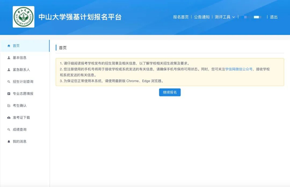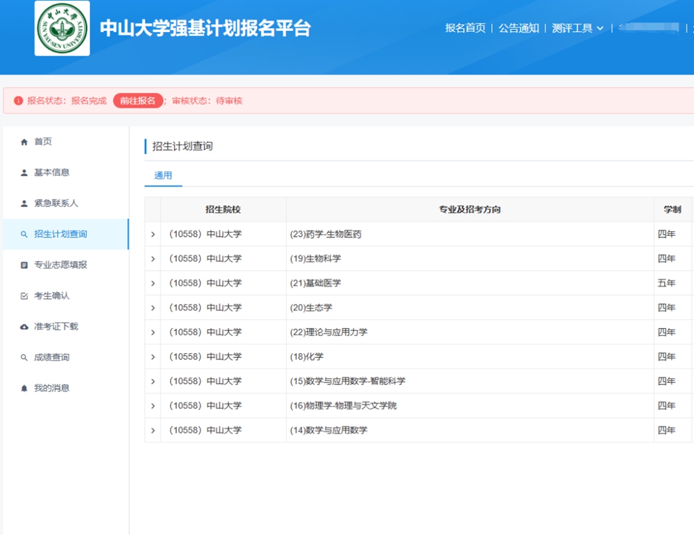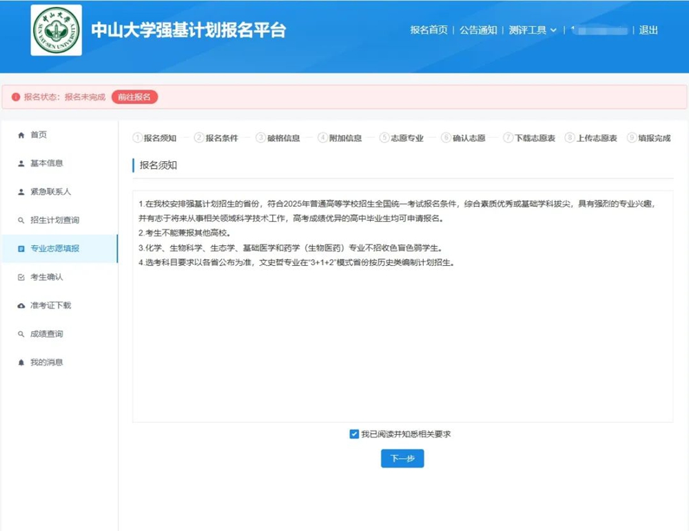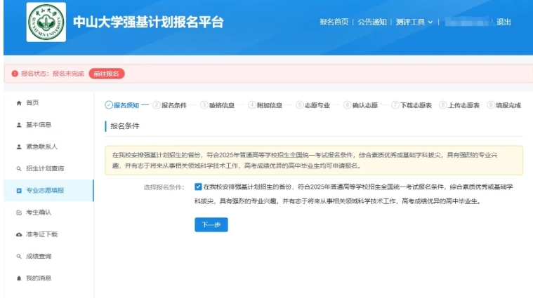 1.登录中山大学强基计划报名平台