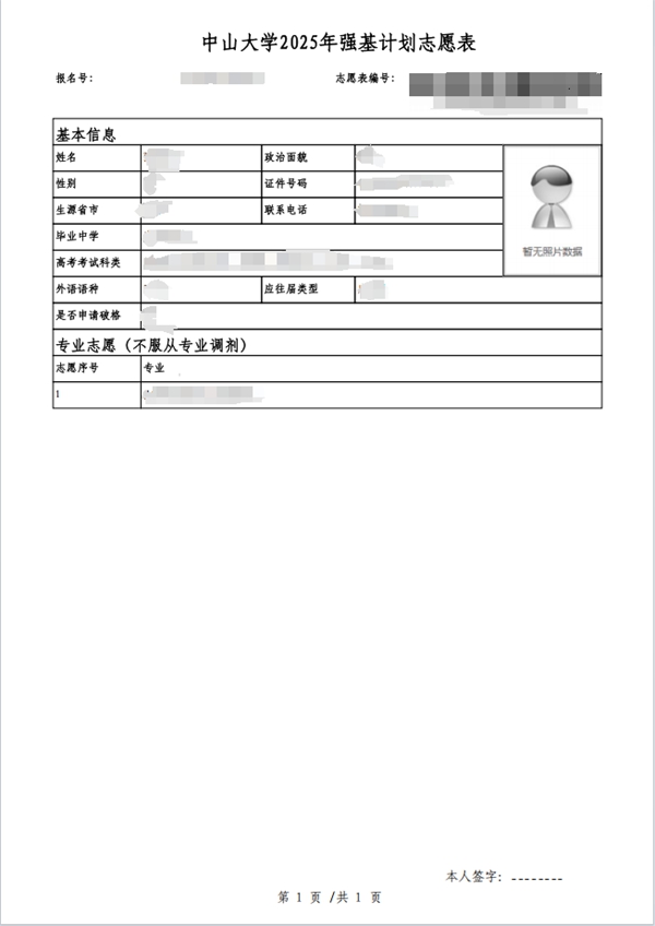 “中山大学”2025年强基计划志愿表”