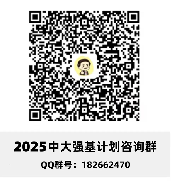 更多关于强基计划招生的具体问题,大家请加入2025中大招生强基咨询QQ群(群号:182662470)了解详情,或者在工作日时间拨打招生办咨询电话(020-84036491)问询。