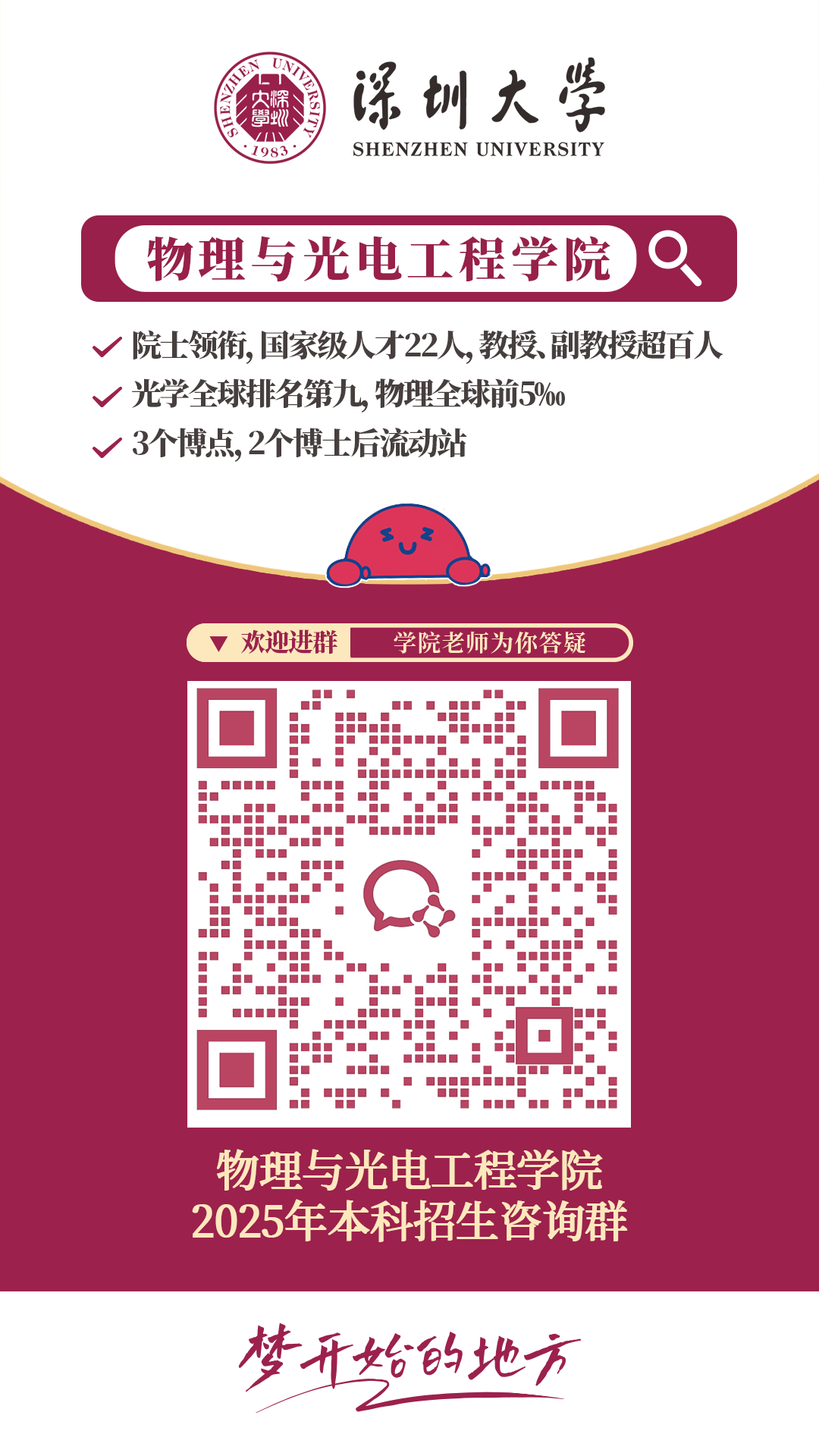 深大“智能感知工程”专业依托学校物理与光电工程学院开设——该学院实力强劲,“光学工程”学科在2024年上海软科位列全国第6名,物理学学科ESI保持在世界前5‰,形成本科-硕士-博士-博士后流动站的完整人才培养体系。