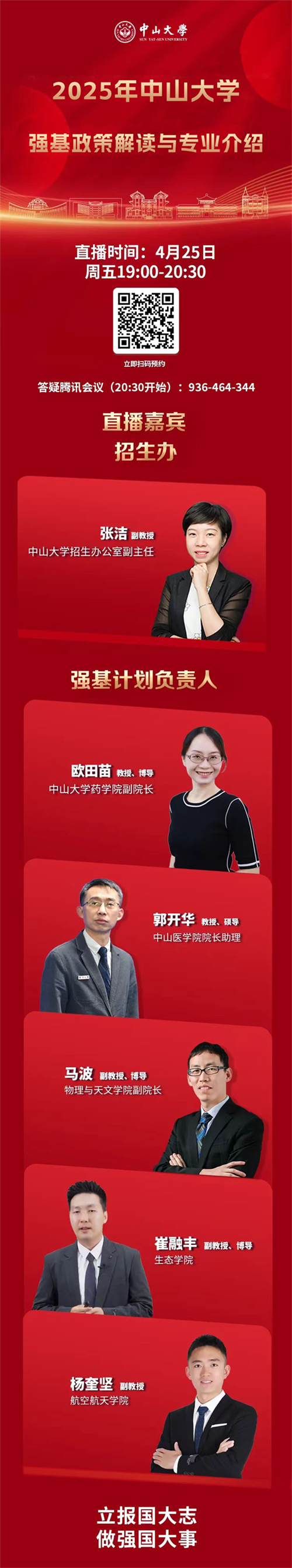 直播预告丨2025中大强基计划政策解读和专业介绍!