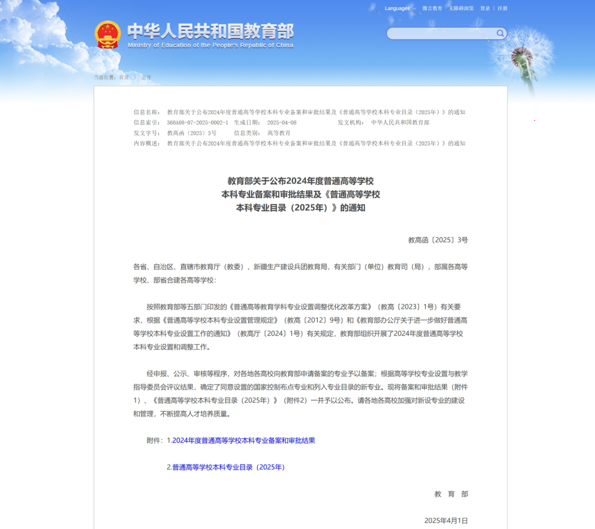 4月22日,教育部正式揭晓2024年度普通高等学校本科专业备案与审批结果,并同步发布《普通高等学校本科专业目录(2025年)》。广州工商学院喜获佳绩,申报的数字经济、金融科技、大数据管理与应用三个本科专业全部顺利获批,为学校的专业建设增添了新的亮点。