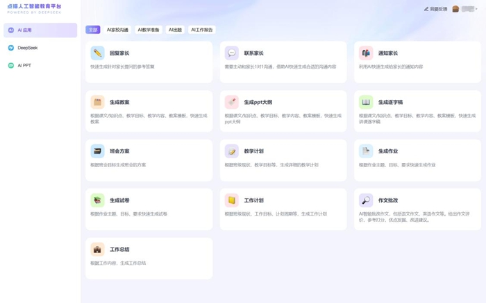 AI平台助力教学效率提升。今年3月,点猫科技自主研发的“点猫人工智能教育平台”正式上线,该平台基于DeepSeek大模型赋能教学管理,覆盖课前、课中、课后全链路。通过AI一键生成个性化教学计划、教案、生成PPT及课堂逐字稿等功能,全力为教育工作者的教学效率保驾护航。