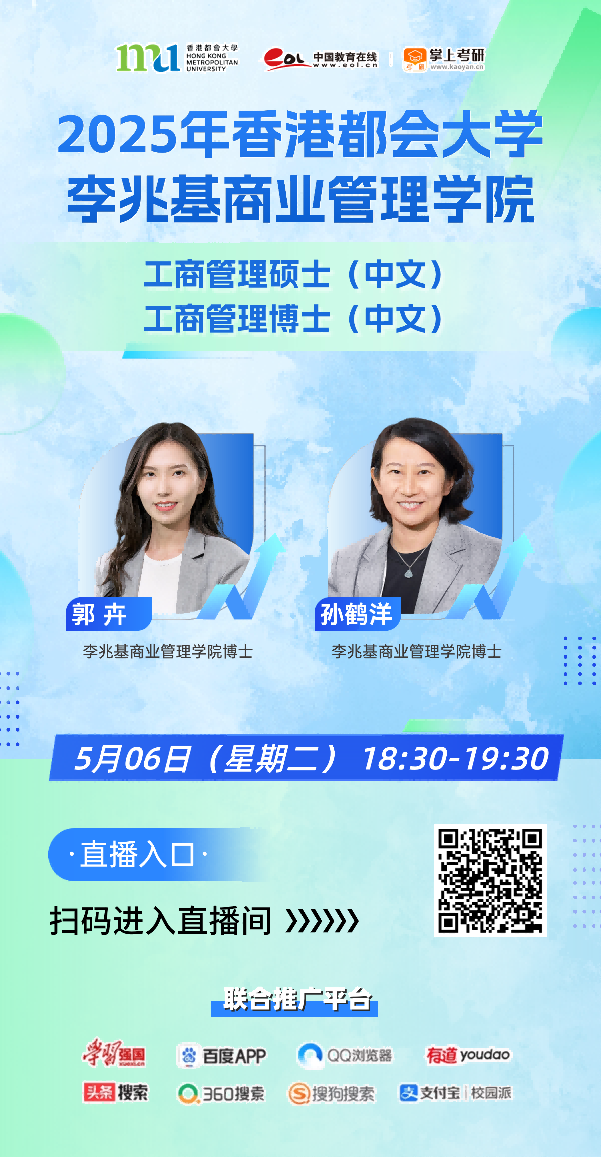 直播预告 | 5月6日,2025年香港都会大学李兆基商业管理学院工商管理硕士(中文)、工商管理博士(中文)课程在线简介会来袭!