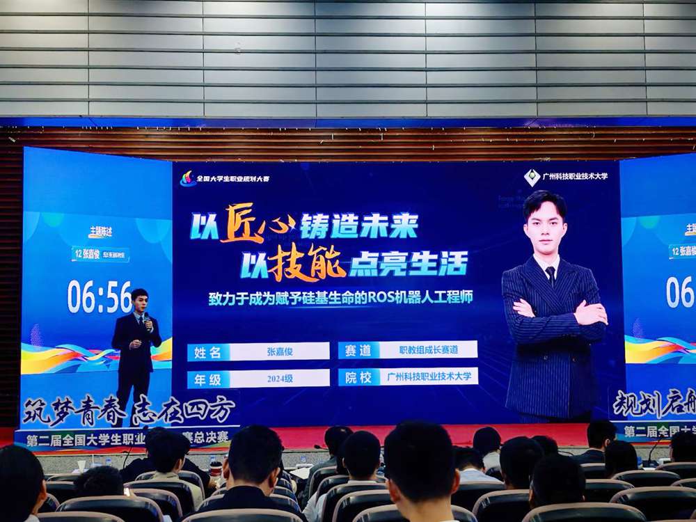 近日,第二届全国大学生职业规划大赛全国总决赛在湖南长沙落幕,广州科技职业技术大学人工智能与大数据学院2024级电气工程专业张嘉俊同学在此次大赛成长赛道职教组比赛中脱颖而出,荣获全国总决赛银奖。