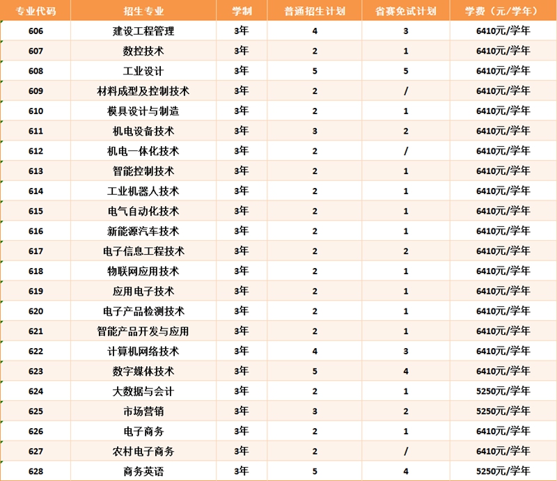 注:省赛免试计划未录满,剩余计划转至普通计划招生