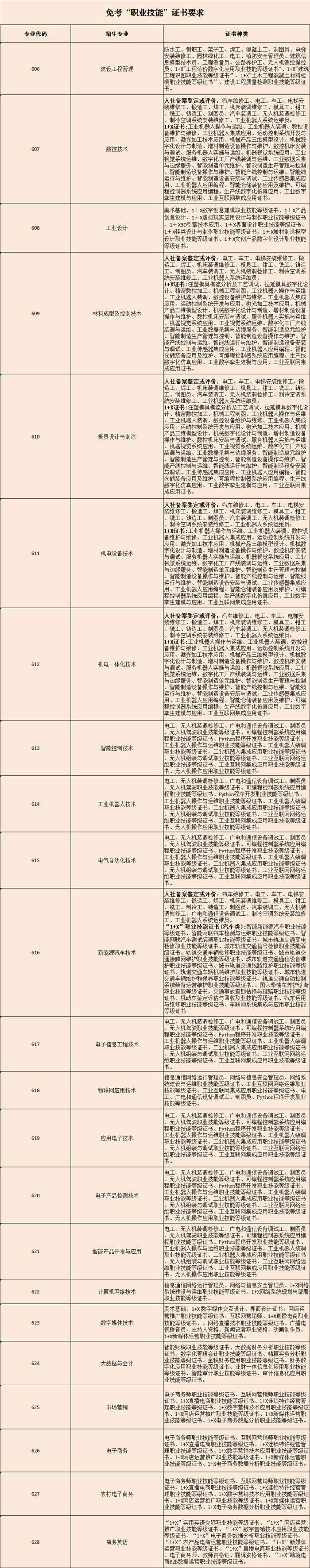 (二)免考“职业技能”:取得相关职业技能等级证书或职业资格证书(中级及以上)的中职应往届毕业生,经我校核实资格,公示无异议的,符合国家、省、学校相关要求的,可免考职业技能。免考职业资格证书详见《附件1:免考“职业技能”证书要求》,且须在以下网址可查询的证书: