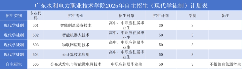 广东水利电力职业技术学院2025年自主招生(现代学徒制)招生简章