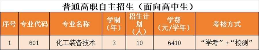 实行“文化素质+职业技能”考核方式,普通高中学生综合素质评价作为招生重要参考。文化素质考试除人才培养特殊需要的专业外,均采用普通高中学业水平考试成绩(满分值为450分)。职业技能考核为职业适应性测试,采用学校自主命题测试(下称“校测”,满分值为100分)方式。