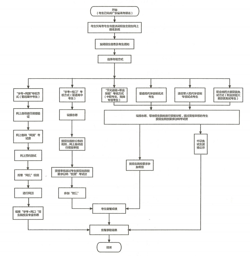报考广州工程职业技术学院的考生须在规定时间内根据本人报考条件, 在“学考+校测”(面向普通高中考生)、“文化基础+职业技能”(面向中职考生)等考核方式中选择一种填报志愿、缴交考试费,及录入相关报名信息、上传有关证明材料(原件扫描版,下同)。经广州工程职业技术学院确认报考资格后,考生不得更改考核方式。