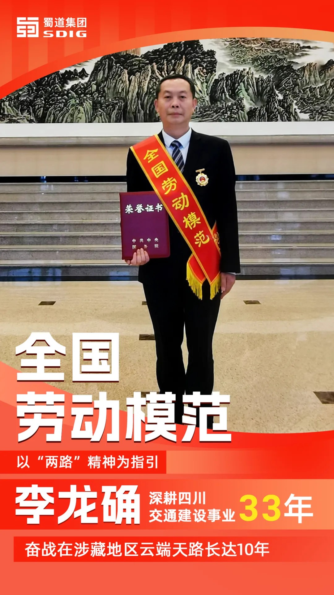 来源: 蜀道集团微信公众号 《喜报!李龙确,全国劳动模范》