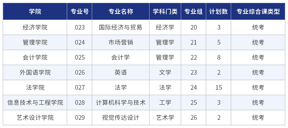 广州商学院2025年普通专升本普通批共开设22个招生专业,涵盖了管理学、经济学、文学、工学、艺术学、法学等六大学科门类,招生计划总数为2500人。以下招生计划为学校向教育主管部门报送的数据,最终请以广东省教育考试院核定公布的计划为准。