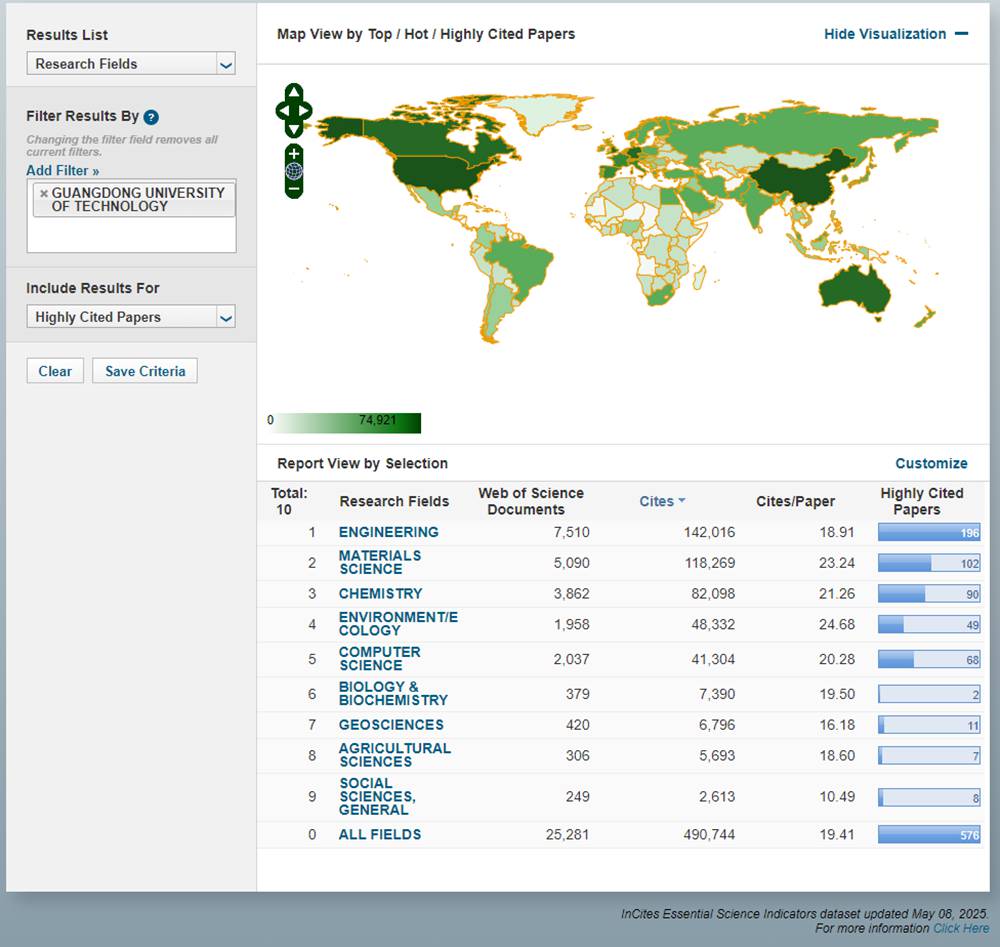 根据基本科学指标数据库(Essential Science Indicators,以下简称ESI)2025年5月8日最新数据显示,广工材料科学(Materials Science)和计算机科学(Computer Science)成功跻身ESI全球排名前1‰。