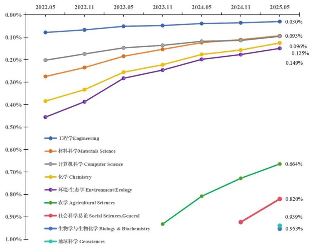2022.05-2025.05学校ESI学科排位上升趋势