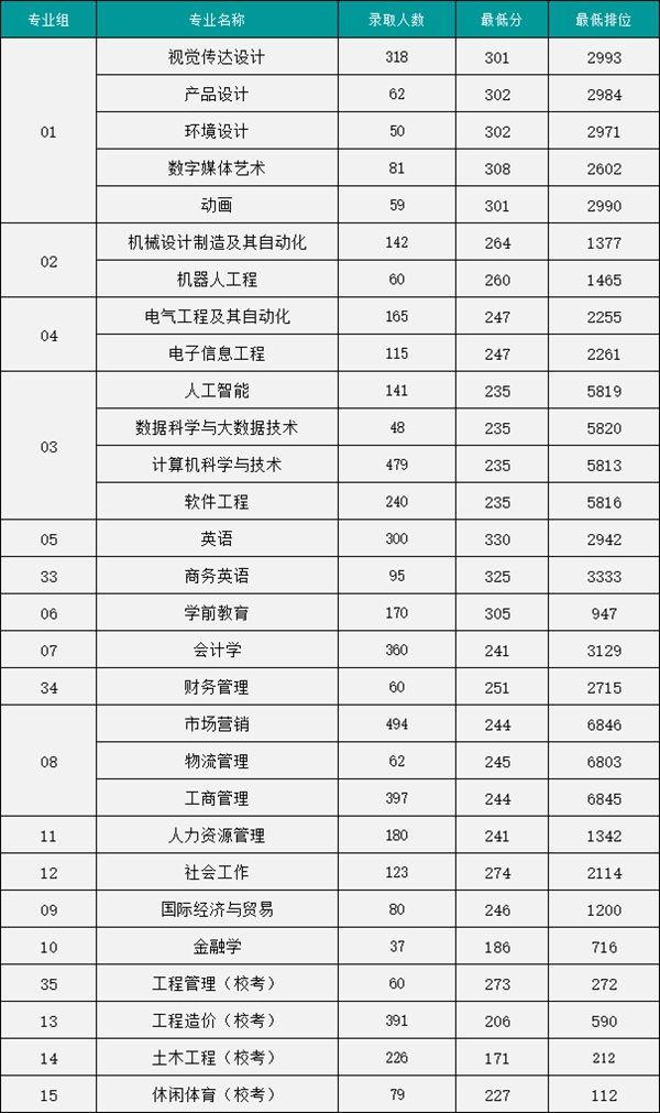 4.退役士兵批次专业组24仅招工学类专业专科学生,专业组25仅招收艺术设计类专业专科学生,且不招收色盲考生;学前教育、休闲体育、工程造价、会计学、商务英语专业的前置专业要求与普通类专升本专业一致;
