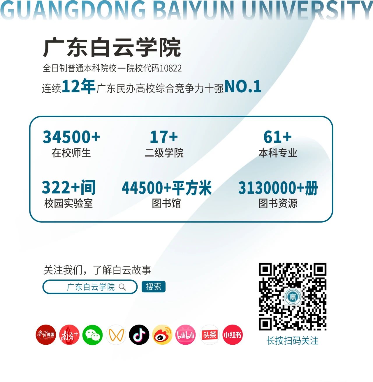 广东白云学院是经教育部批准成立的全日制普通本科院校,坚持社会主义办学方向,全面贯彻党的教育方针,落实立德树人根本任务;坚守“为党育人、为国育才”初心使命。