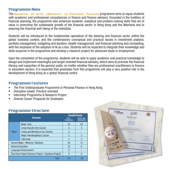 香港首个专门针对「个人及家庭」的金融学学士学位课程,为香港培养资产及财富管理专才