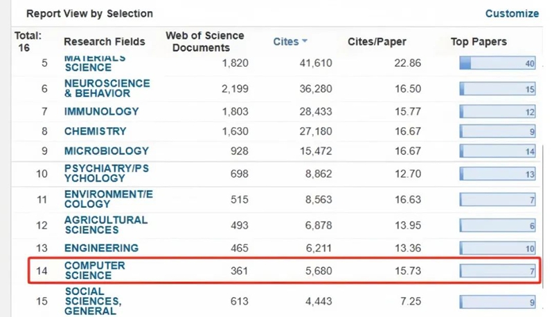 计算机科学入围ESI全球前1%