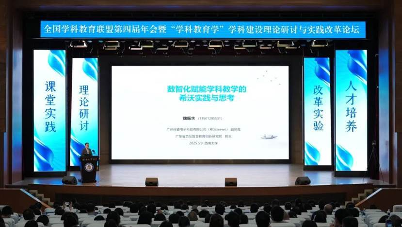 5月9日至10日,全国学科教育联盟第四届年会暨“学科教育学”学科建设理论研讨与实践改革论坛在重庆西南大学隆重举行。本次大会汇聚全国教育领域的专家学者、一线教师及行业代表,共同探讨学科教育学的前沿理论与实践创新。广州视睿电子科技有限公司(希沃)作为教育科技领域的代表、活动连续三年的唯一协办企业,不仅为活动提供全程直播的技术保障支持,更通过报告分享、案例解析等形式,全面展现了自身以数字化技术赋能教育高质量发展的实践路径。