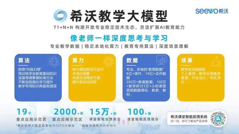 截至2025年4月,以希沃教学大模型2.0为基础的希沃自研教学应用,已完成40万份课件的智能生成,实现190万次对话任务,并输出20万节课堂反馈报告,为更多AI产品在教学中的应用打下了扎实的基础。