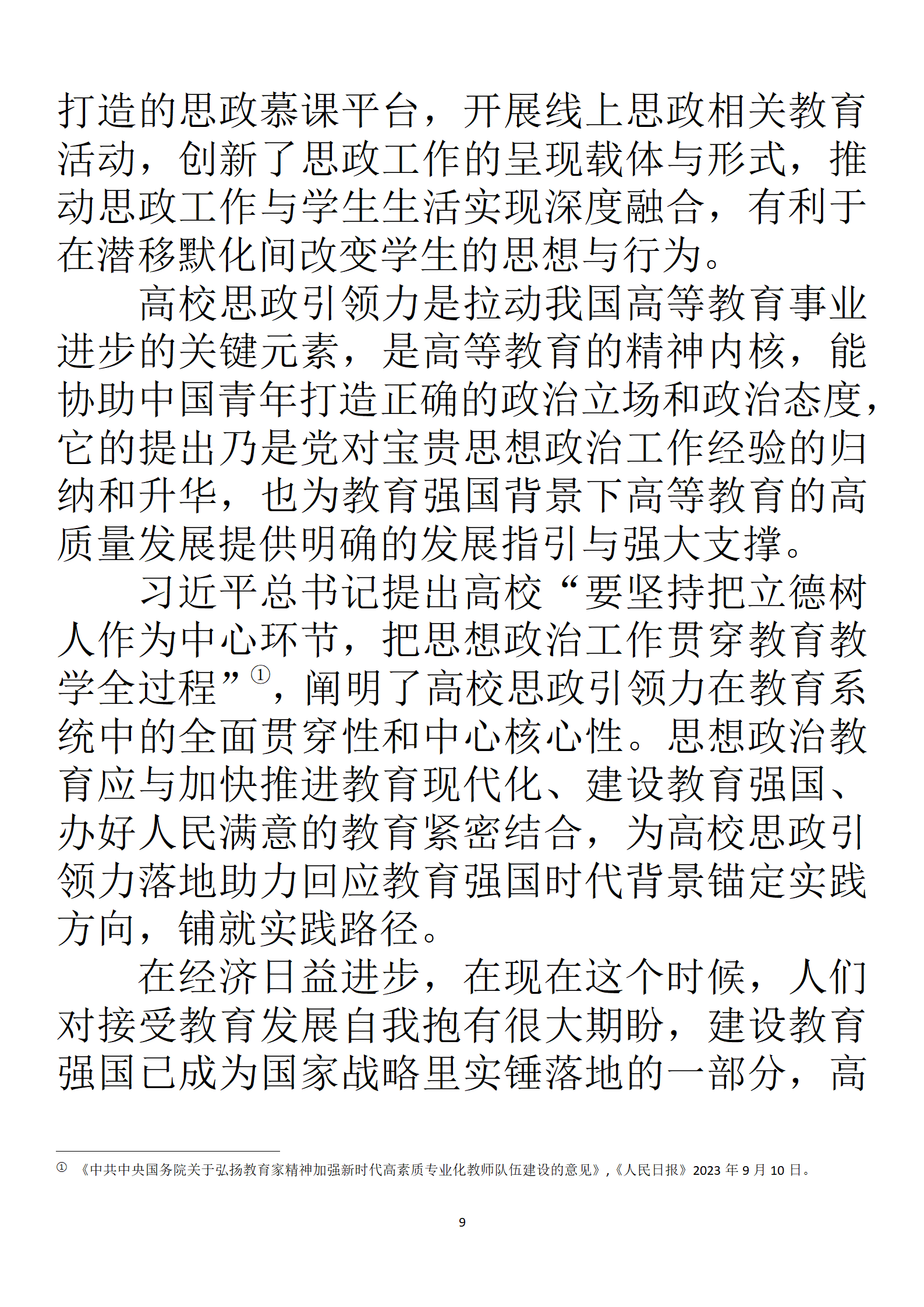 教育强国背景下高校思政引领力的内涵重构与实践进路——基于多维育人效能的实证分析