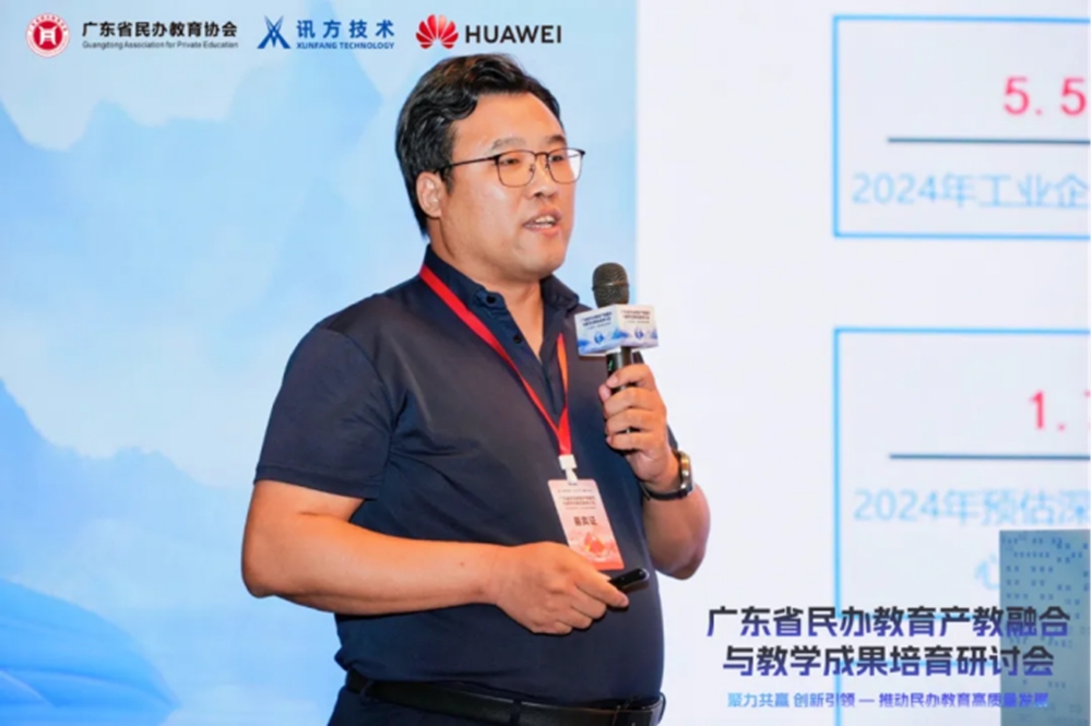 深圳市讯方技术股份有限公司董事长戴毅在致辞中表示,作为深耕ICT行业20余年的多元化产教融合型国家高新技术企业,公司始终将“三循环”产教融合数字人才生态作为核心战略,通过政企行校协同,推动教育链与产业链的深度融合。在与华为的全面合作中,讯方紧跟ICT产业技术发展持续创新,深入人工智能、鸿蒙、工业软件、信创技术等前沿领域,联合开发了体系化的解决方案和新兴技术产品,助力民办高校实现专业建设与产业需求的精准对接。讯方愿以最大诚意和开放姿态,与广东省民办教育协会、华为技术有限公司、各高校及行业伙伴紧密协作,共同探索产教融合的新范式。