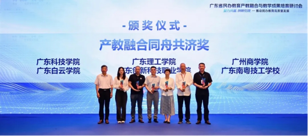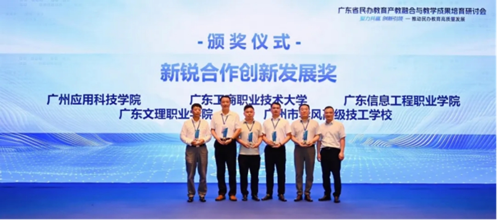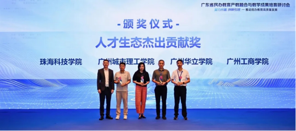 在随后的颁奖仪式上,广东科技学院、广东理工学院、广州商学院、广东白云学院、广东创新科技职业学院、广东南粤技工学校获“产教融合同舟共济奖”;广州应用科技学院、广东工商职业技术大学、广东信息工程职业学院、广东文理职业学院、广州市华风高级技工学校获“新锐合作创新发展奖”;珠海科技学院、广州城市理工学院、广州华立学院、广州工商学院获“人才生态杰出贡献奖”。