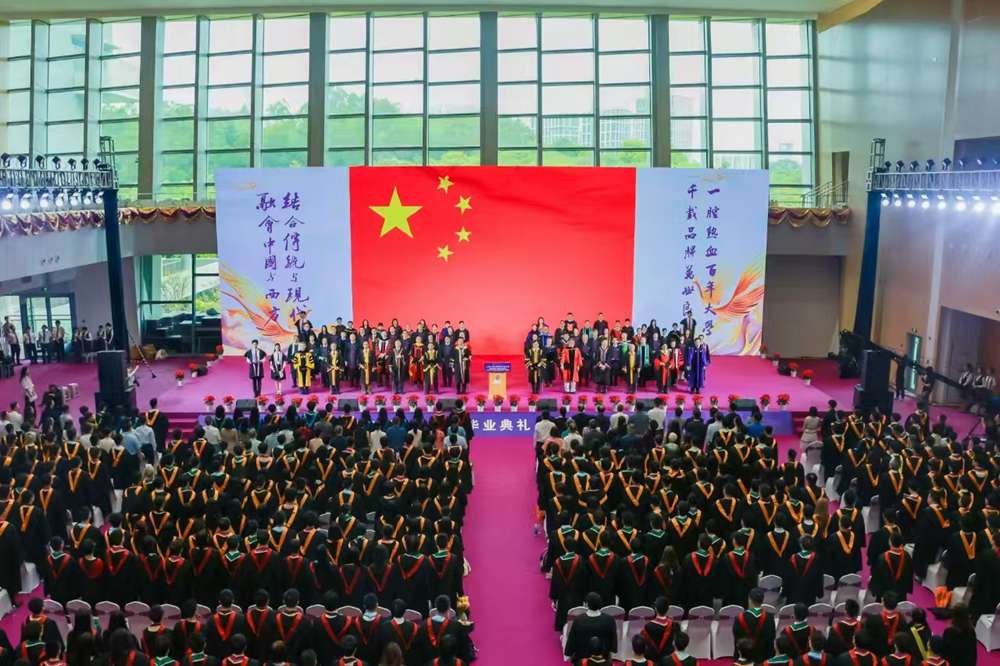 徐扬生校长在致辞中高度评价了本届毕业生们的成长与成就,并结合时代背景勉励同学们把握时代的机遇,实现自己的价值与梦想,在未来的人生旅途中脚踏实地,勇敢挑战,坚韧前行,成为沟通中外、塑造未来的桥梁。