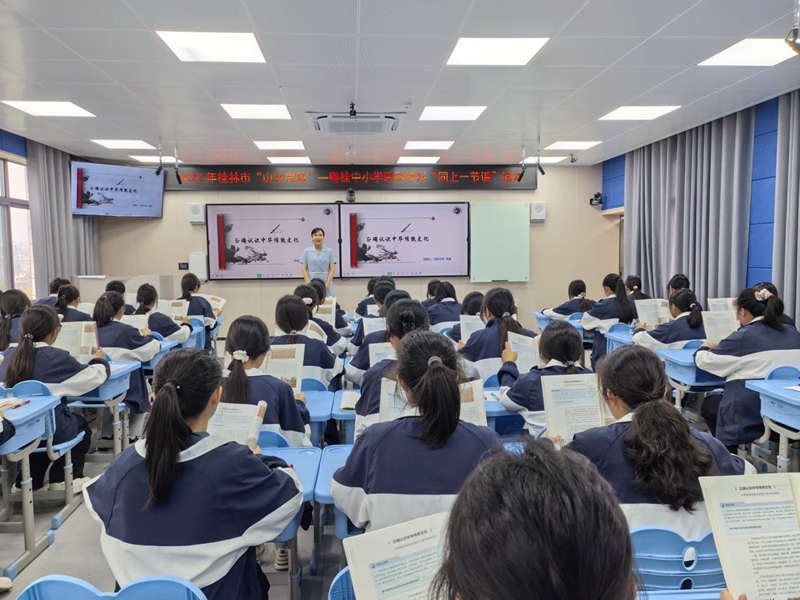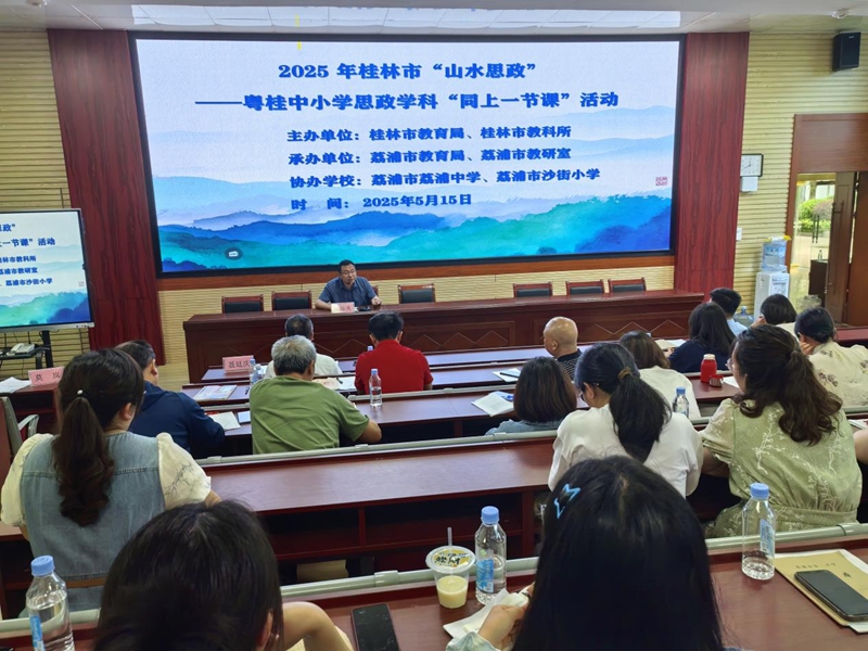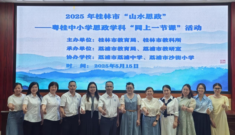 为贯彻落实全国教育大会精神,进一步开展粤桂两地教育合作与交流,推动优质教育资源的共建共享,发挥名教师的示范引领和辐射作用,2025年5月14日至16日,应桂林市教育科学研究所邀请,广东省聂廷庆名师工作室学员到广西桂林荔浦市荔浦中学开展:粤桂中小学思政课“同上一节课”“思政一体化背景下大集体备课的实践探索”送教送培活动。本次活动得到桂林市教育科学研究所大力支持,桂林市教科所政治教研员莫岚老师、荔浦市教育局党组成员叶少华、荔浦中学校长韦峄,桂林市各县(市、区)教研室专(兼)职政治教研员和各县(市、区)中小学思政课骨干教师代表共150多人参与了本次活动。